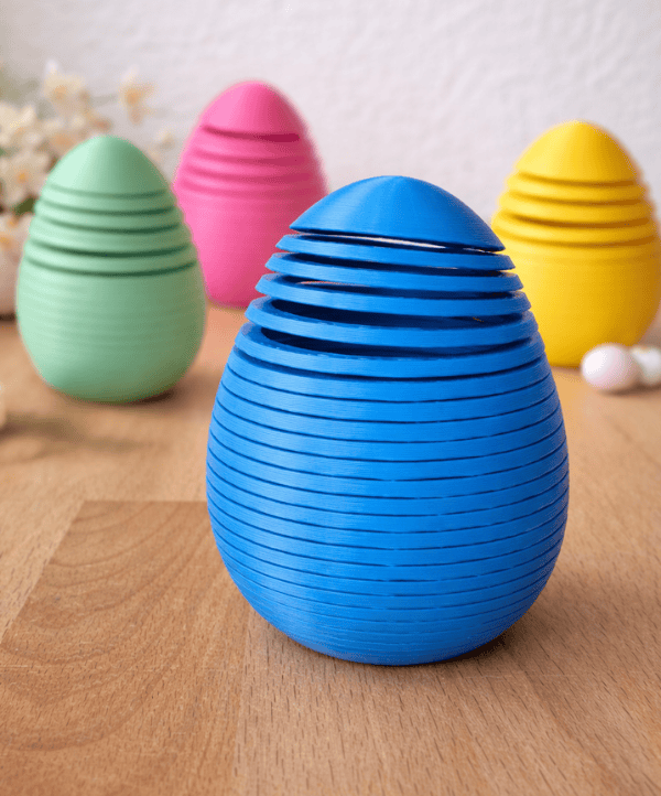 Dieses Osterei ist ein echtes Highlight für Kinder – und ehrlich gesagt auch für Erwachsene. Durch das flexible Design lässt sich das Ei wie ein Slinky zusammendrücken und auseinanderziehen und wird so schnell zum kleinen Spielzeug zwischendurch.